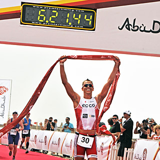 Rasmus Henning ran down local favorite Faris Al-Sultan to take the win at the 2012 Abu Dhabi Triathlon. Nikki Butterfield pulled away on the bike and held on during the run to take the women's crown.
