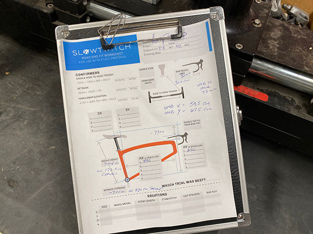 Andy came up to The Compound from his hometown Tucson for a fit session in early December. (And please don't scrutinize this photo; it was not the finished position, though the pics of the bike you see are matched to the fit coordinates achieved during the fit session.)