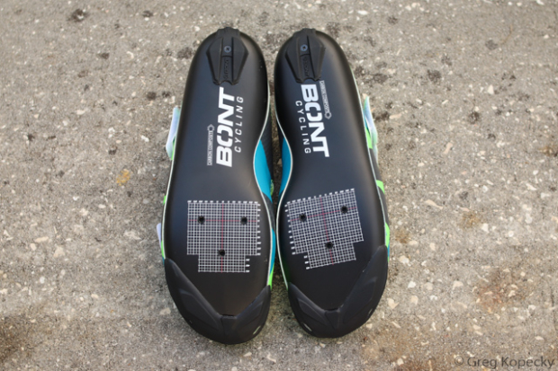 Bont is known for their nice grid system on the bottom of the shoe, to aid in accurate cleat placement. As far as the placement of the bolt holes themselves, I found that they seemed to be a little closer to the toe than the Shimano and Specialized shoes I used most recently. I simply adjusted the cleats further back (but not all the way back) in their adjustment range – so it was a non-issue. If you happen to prefer a cleat position that’s very far back, I suggest measuring your old shoes and comparing them to the Bonts before buying.