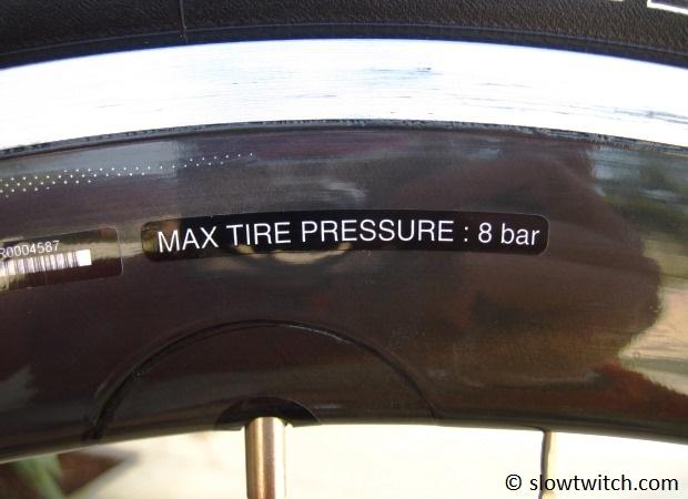 Regardless of rim width, Shimano recommends a conservative maximum pressure of 8 bar (116psi) for the clinchers.