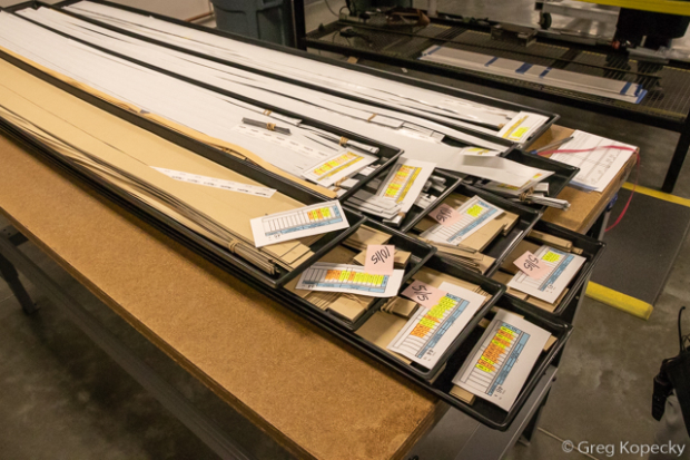 Each tray you see here has all of the pieces for one rim. They are all carefully packaged, counted, and weighed – with each rim requiring a unique recipe.