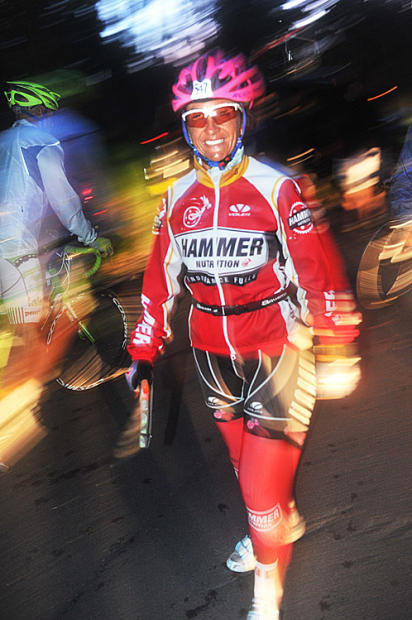 Michael Coughlin can smile while icing the legs that propelled hi to a race-best 7:44:23 split that left him 2nd overall after Day 2.