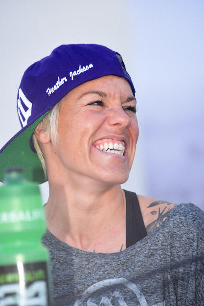 Hillary Biscay, finisher of 66 Ironman distance events and winner of the 2013 Ultraman World Championship, was at the expo offering her Smash fashions.
