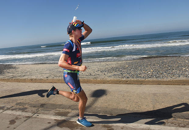 Jan Frodeno led the field until 15 miles into the bike leg when a flat tire derailed his chances. After losing 15 minutes to reinflate, the German rode the rest of the way before hanging it up for the day.