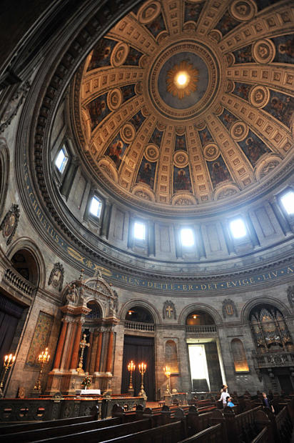 Inside the famous baroque Marmorkirken (Marble Church), also known as the Fredikskirken, begun in 1749 and finished a century later, It stands just west of the Amalienborg royal palaces.