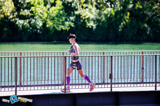 A bird's view of Jessica Meyers during the bike segment.