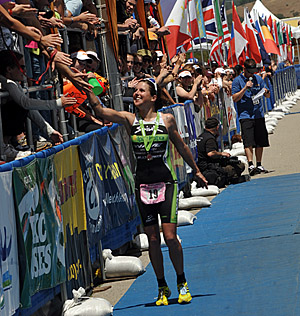 4:15 Lieto said, after crossing the finish, "Bike course had no tailwind, all headwind or no wind. I had to burn a lot of matches to make up that minute and a half I lost in the swim. Tell all the Slowtwitchers: the swim does matter!"