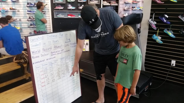 Luke's Locker provided the venue for the record run. Delzer put the store's Gait Lab room to work on Sunday.