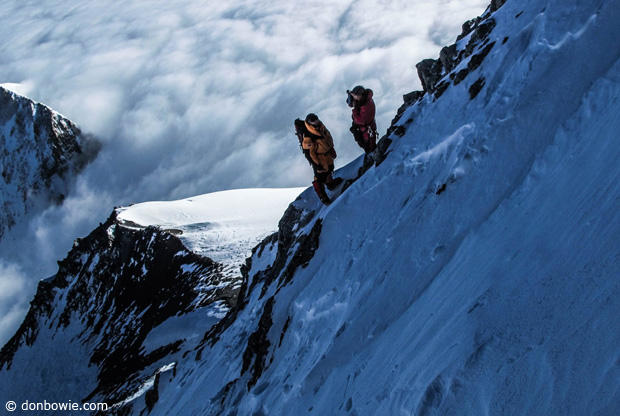Don: During my ultra-cycling/running events I have come to understand a unique kind of suffering due to the maintained physical output required. High altitude climbing requires a slightly less intense level of physical output but stretches it out over 3 or 4 days (or more)- and all that time you haven't slept, you're extremely dehydrated due to a max intake of 2-3 liters of fluids per day, you can't eat much due to constant nausea, and you feel light-headed and utterly exhausted due to lack of oxygen. Meanwhile your physical body is actually dying with every hour you spend above 6500 meters, and the arctic temperatures feel even colder due to hypoxia induced shunting and vaso-constriction in your fingers, toes, and extremities in order to keep your vital organs oxygenated enough to stay alive. Plus, you must keep a clear and calm disposition despite the constant threat of objective dangers like rock falls, avalanches, hurricane force winds, huge crevasses, and steep slopes that need be navigated without mistake- or you die. If by chance something were to go wrong there is no rescue – you are totally on your own- because helicopters can't fly that high, and even if by some extremely remote chance someone were able find your location, you'd likely die from exposure before they arrived.