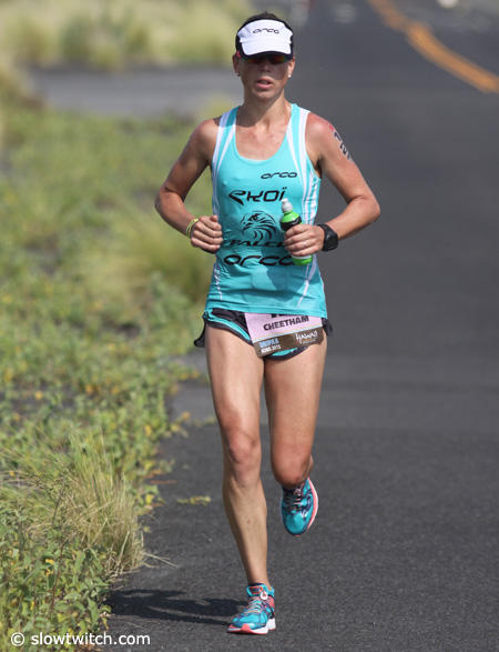 Caitlin Snow who is well known for her running prowess only managed a 3:24:44 run on this hot day in Kona.