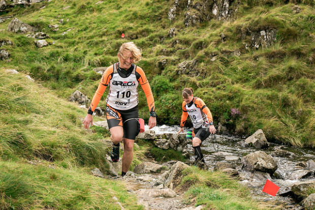 And we go up again. Orna O'Toole and Kirsten Poynter of team Yorkies all smiles on the way to 7th place in the female division.