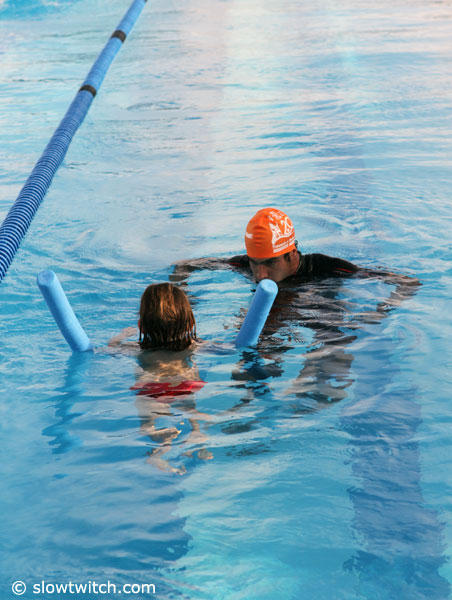 Bella Bayliss here with son Charlie has taken permanent residence at Sands Beach and has triathlon camps here.