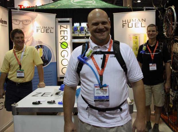 The ZeroGoo fuel injection system attaches to any Camelbak system.