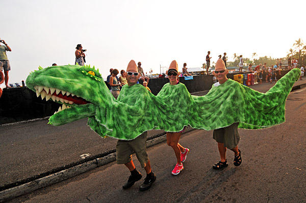 Competitor Group's Bob Babbitt leads, Mike Reilly cabooses, conhead centipede (tripede?)