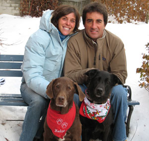 Lisa: my biggest weakness is my dogs – Madison and Brunswick – I do not like to leave them – my favorite non training past time is a walking them with Dave on a nice trail. Today was the perfect day – I got to walk them with Dave this morning before swimming and this evening after biking. And now, we are going to watch 24 – with the Raptor's game in the background, of course!!!