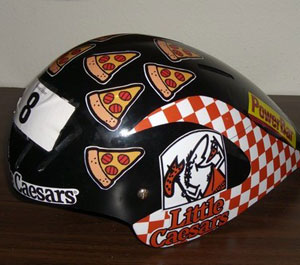 ST: Who came up with the helmet pizza sticker idea and how exactly does it work?