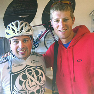 Stef: At my first multisport race, a duathlon, Peter Reid was on the starting line. On my second race Simon Whitfield was also racing. We are so lucky in Victoria as many elite triathletes are living and training here. I have the chance and honor to be friend with Jasper Blake. He is not only a great triathlete (now retired) but also an incredible person. I also have been inspired by Ryder Hesjedal [seen with Moreau in the photo below] who also lives near me in Victoria. But it was especially inspiring to see Jordan Rapp come back so strong after his near fatal accident.