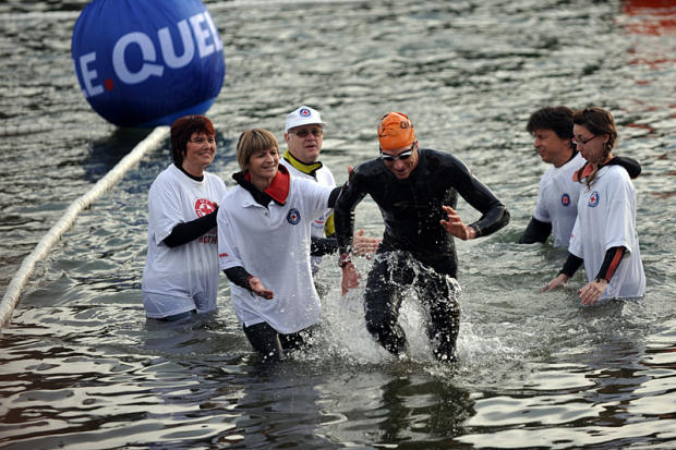 Even through the perspective shortening magic of the telephoto lens, the swim course looks infinite.