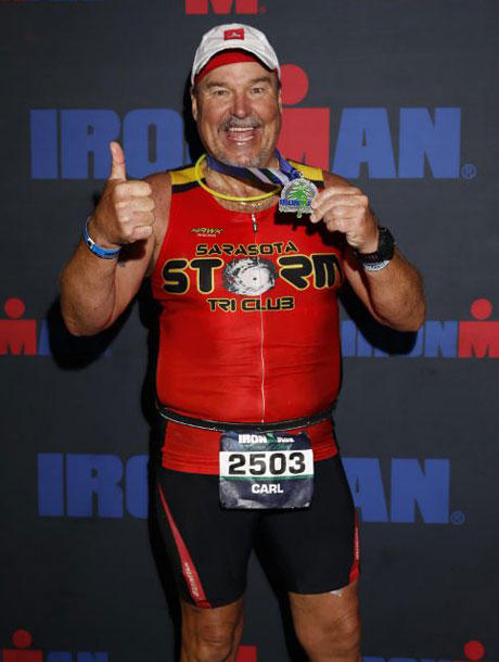 Carl: Well, I see the sport as an evolution of oneself, a learning experience. I love challenges, no pun or endorsement intended, but to better oneself one has to push the envelope. Maybe I pushed mine a bit too far this time considering I had done IM Coeur d’Alene three weeks earlier. But if you don’t push yourself you will never know what you can do, right? The heat did not bother me since I am used to it living in Florida, but the bike climbs did me in. As you know Florida is rather flat. At mile 82 on the bike race officials pulled me over and said I was 15 minutes off the pace to finish the whole race under 15 hours. I could finish the bike, but no run. Oh well…a setback, but they are only temporary and makes the eventual finish that much sweeter.