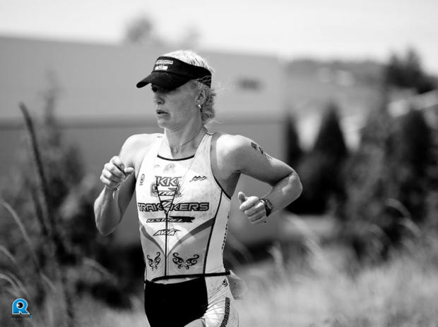 Jordan Rapp chasing the leaders after a slower swim without a speedsuit. He left his at home thinking it was going to be a wetsuit swim, but the water temp was warmer than advertised.