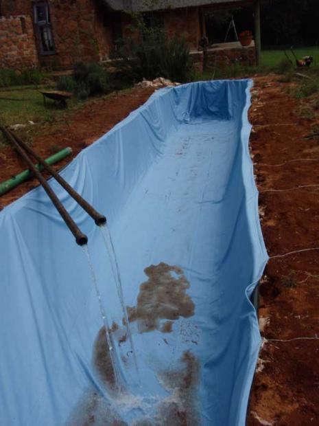 After a lot of digging, filling, carrying and placing 2,500 five-pound sand bags and plenty of mud and sweat, Conrad Stoltz's pool is finally done.