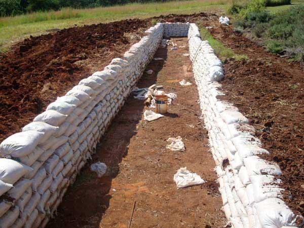 Stamping down the sand bags with a thumper instead of a hard workout.