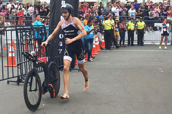 Forero led the swim in 24:59, which gave him a 20 seconds lead on Colucci, 21 seconds on Paul Matthews of Australia, 23 seconds on Brazilians Igor Amorelli and Fernando Toldi, 45 seconds on Thiago Vinhal of Brazil, 47 seconds on Michael Poole of the U.S., and 2:34 and 2:43 on Cody Beals of Canada and Patrick Evoe of the U.S.