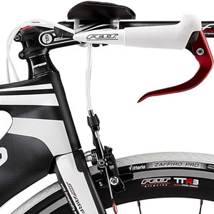 Felt, however, is banking on SRAM Red. This group has dominated both time trial and triathlon podiums this year. And, it just shifts nicely. Still, the Transition Pro is the only other bike I can think of in this price category choosing SRAM (it's got a Red rear derailleur and a Force front).