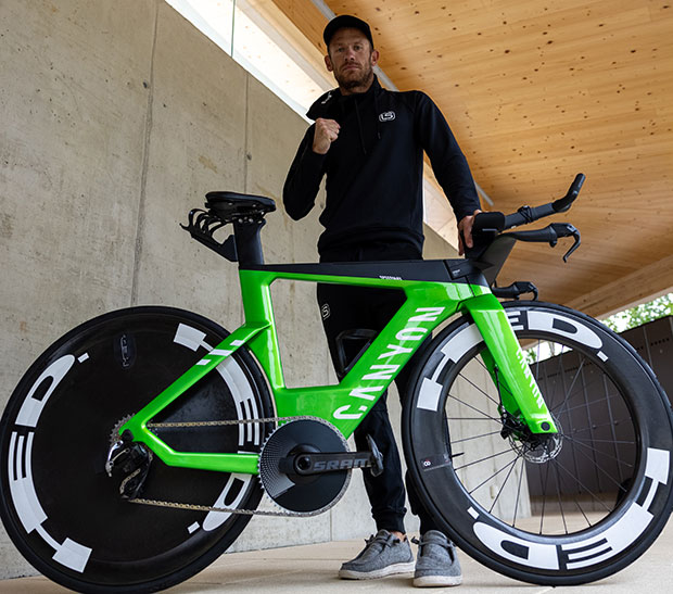 I suspect this has a lot to do with his preparation for his hour velodrome run last year, where he rode 51.3km last October to smash the Canadian record. But that’s just with regard to narrowness. Lionel’s position on his new Speedmax CFR is a bit of a departure, and you can see the upward tilt in the bars not evident during his hour ride.