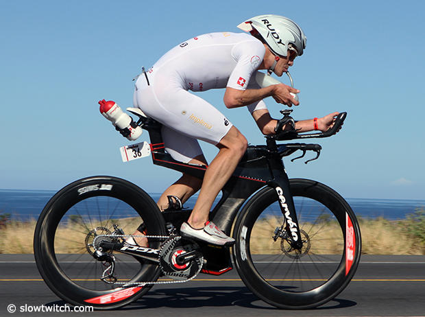 American Jesse Thomas was near the front most of the race with a good swim and 4:34:13 bike time and in the end he finished 16th.