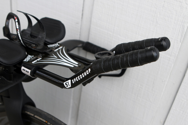 Joe Gambles has 51 Speedshop Ultimate extensions on his QR PRsix and also has the 51 Speedshop arm cups in place. The XLab Versa 500 BTA bottle cage setup allows him to stay aero.