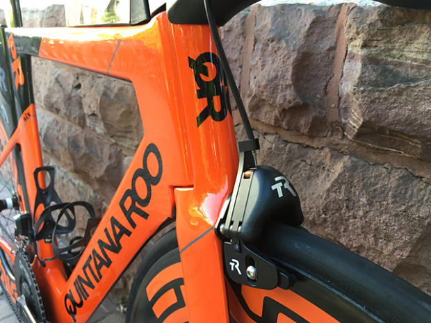 Timo Bracht is 1.82 meters tall, weighs 70kg and rides this distinctive orange 56cm Quintana Roo PRsix.