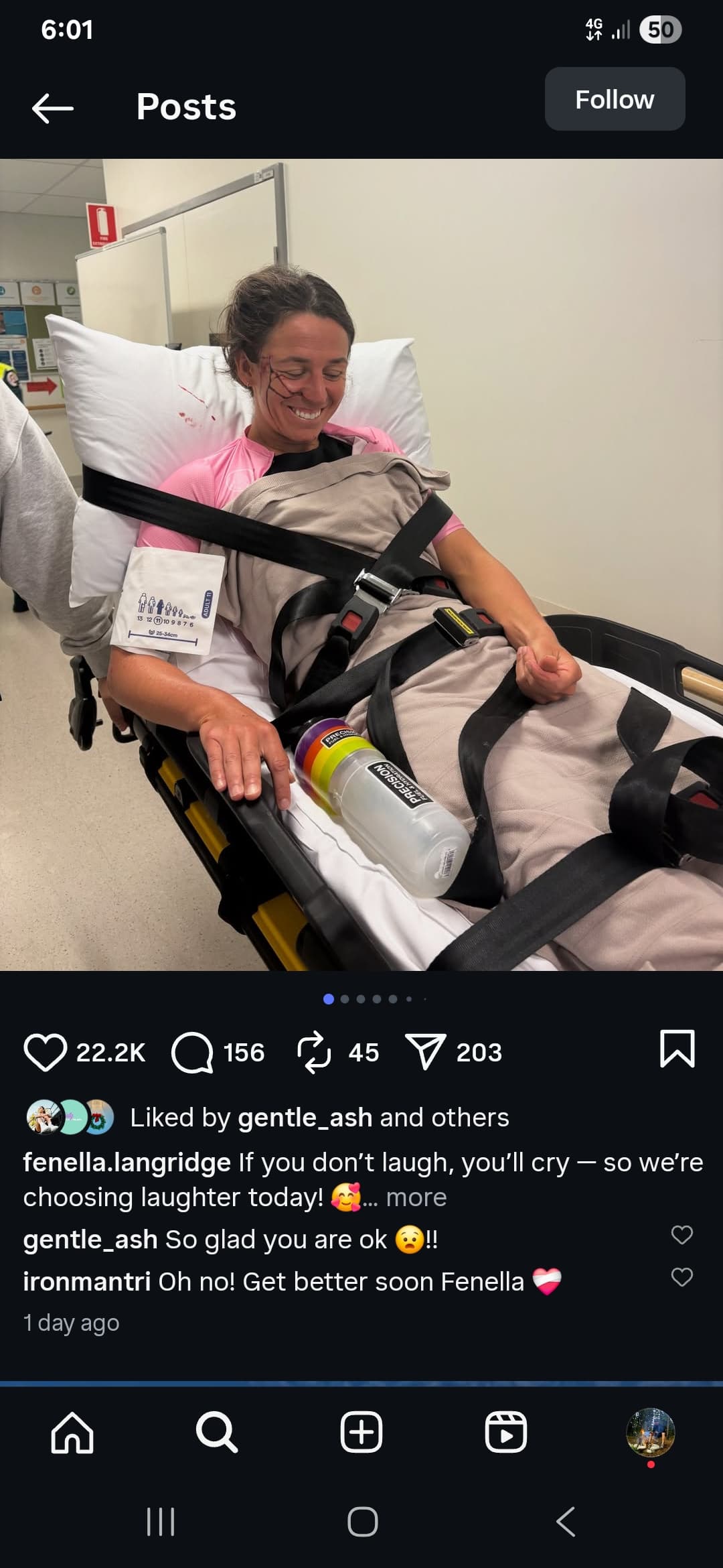 Such a shame for Fenella who went to Busselton to defend her title only to have this happen on the Wed before the race.As if she hasn’t dealt with enough already this year.