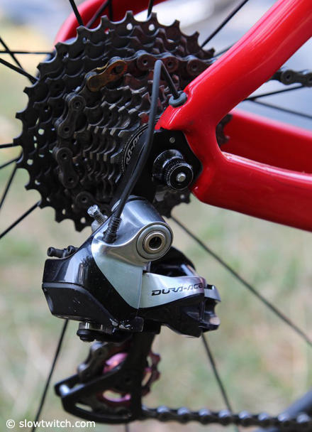 The Shimano Dura-Ace Di2 rear derailleur has CeramicSpeed pulleys.