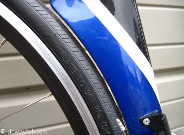 I started with the tires at about 90psi, and ended up settling on about 80 – 85 as my ‘happy place’ (and I’m 170 lbs). If you weigh less, don’t be shy about dropping the pressure a little bit. At low pressures, the extra comfort is noticeable, especially when riding in your aerobars on rough surfaces.