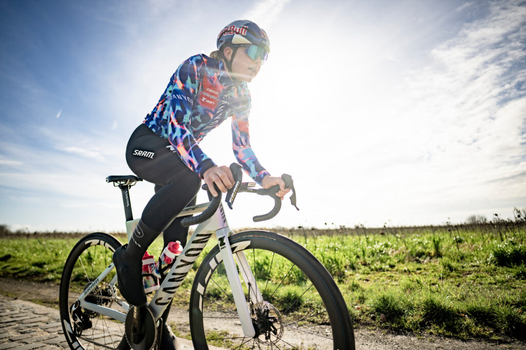 Canyon also says the Endurace CFR is tested beyond standard industry road bike testing protocols — impact loads on the rear axle, increased falling mass impacts on front wheel and fork, seat tube overloading — all designed to replicate what the cobbles do to a bike in competition.