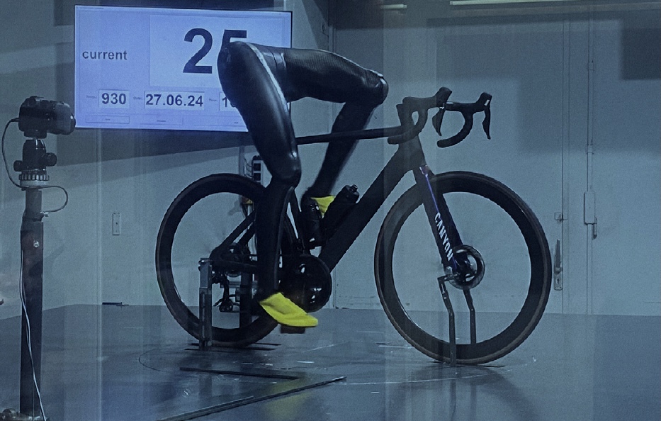 Canyon tests at the GST Wind Tunnel in Immenstadt, Germany — a former aerospace facility. They use a carbon mobile leg dummy called “Ferdi” to replicate pedaling motion across a ±20° yaw angle sweep. They’ve been using this protocol for over a decade, which at least gives the consistency in their year-over-year comparisons, even if wind tunnel numbers are always hard to compare across brands.