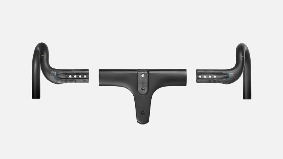 There’s also the CP0053 RACE Bar, available as a MyCanyon customization option. This is the one the pros will use. It’s a V-shape monocoque design wieghing 350 grams — 120 grams lighter than the PACE Bar — and Canyon claims it saves 2 watts at 45 km/h in the wind tunnel. In a track test comparing an out-of-the-box PACE Bar (395mm width, 20mm spacers) versus the RACE Bar (350mm width, 20mm spacers), one rider recorded a 25 watt drag reduction in an aero position. (Which goes back to my point about what happens after a wind tunnel )