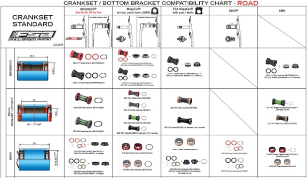 FSA has a very large chart for BB compatibility on their website (the small snippet above will give you a taste of the options).