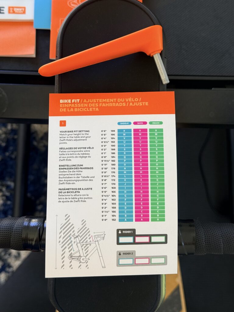 The fit range of the bike is not perfect, but it is a great estimate. I had my wife hop on the bike, and at 5 feet 1 inch tall coupled with a relatively short inseam, at the lowest seat-height setting, we could not quite get her into a position that felt truly dialed. Some cleat spacers would bridge the gap, but still not optimal. Zwift notes that the fit range starts around 5 feet, but as always, there is a difference between technically fitting and actually fitting well, especially if you consider the leg/torso ratios of some bodies.