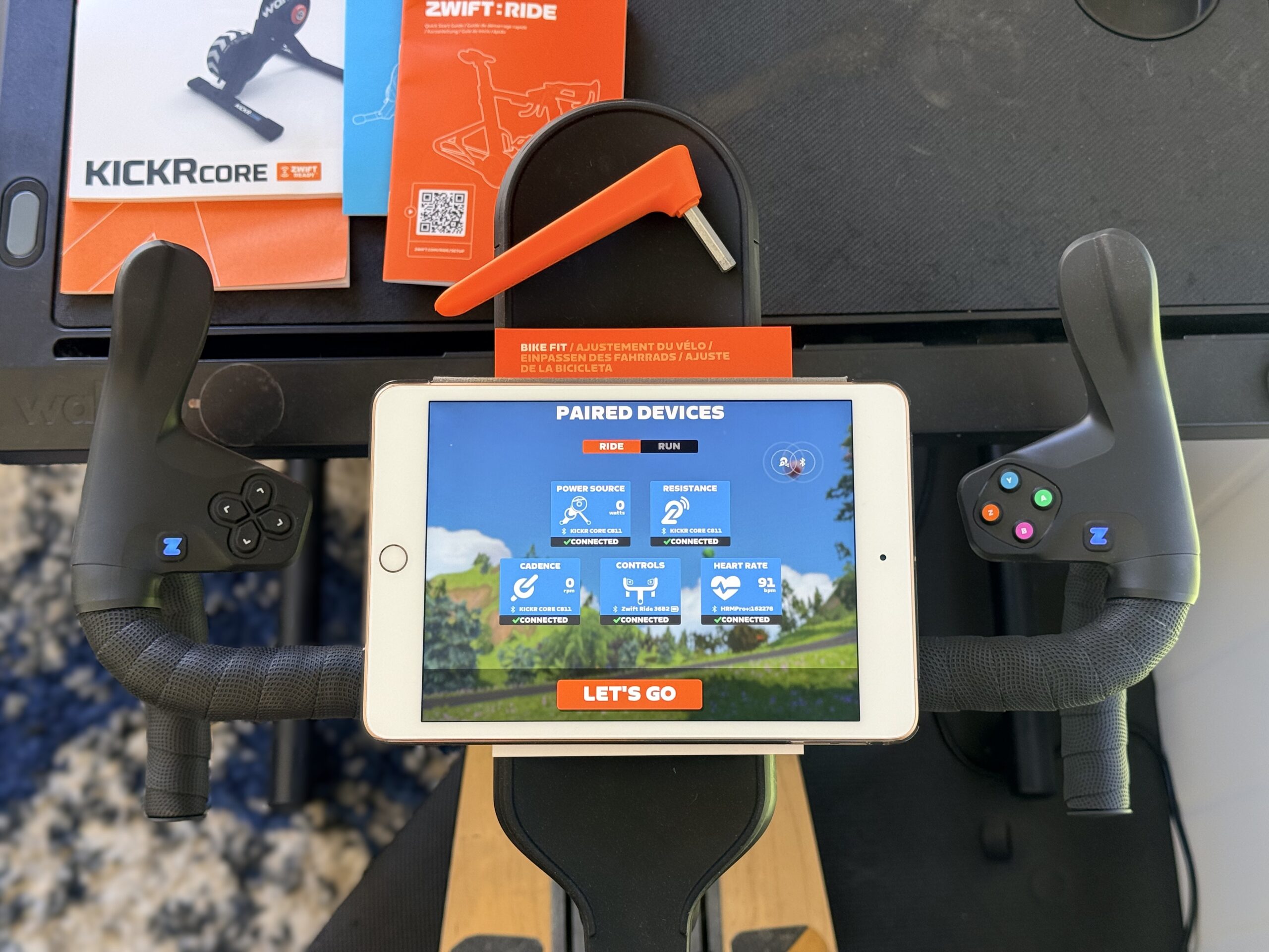 A lot of indoor setups are manageable, but they still carry enough hassle that they become one more excuse not to train, like finding the right thru-axle adapter to marry your bike frame to a direct drive trainer. The Zwift Ride Wahoo Core 2 combo removes a lot of that friction…once I got it together, it was ready to power on and cycle on (pun intended). For many of our readers, if you are trying to train around busy schedules, minimizing the barriers to starting a ride goes a long way.