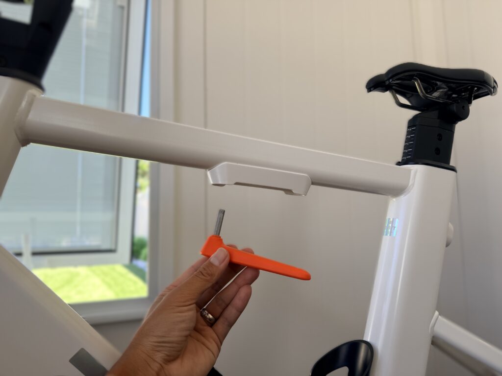 The biggest selling point here may be just how easy it is to adjust. Seat height, reach, and handlebar stack can all be changed with the included tool, which conveniently sits under the top tube. Without hesitation, you can adjust on the fly, which I found myself doing during my first couple of rides to dial in the reach of the handlebar. Additionally, if two people are riding regularly, there is real value in having one dedicated indoor bike with power and full functionality rather than constantly taking a bike on and off the trainer or trying to justify multiple setups.