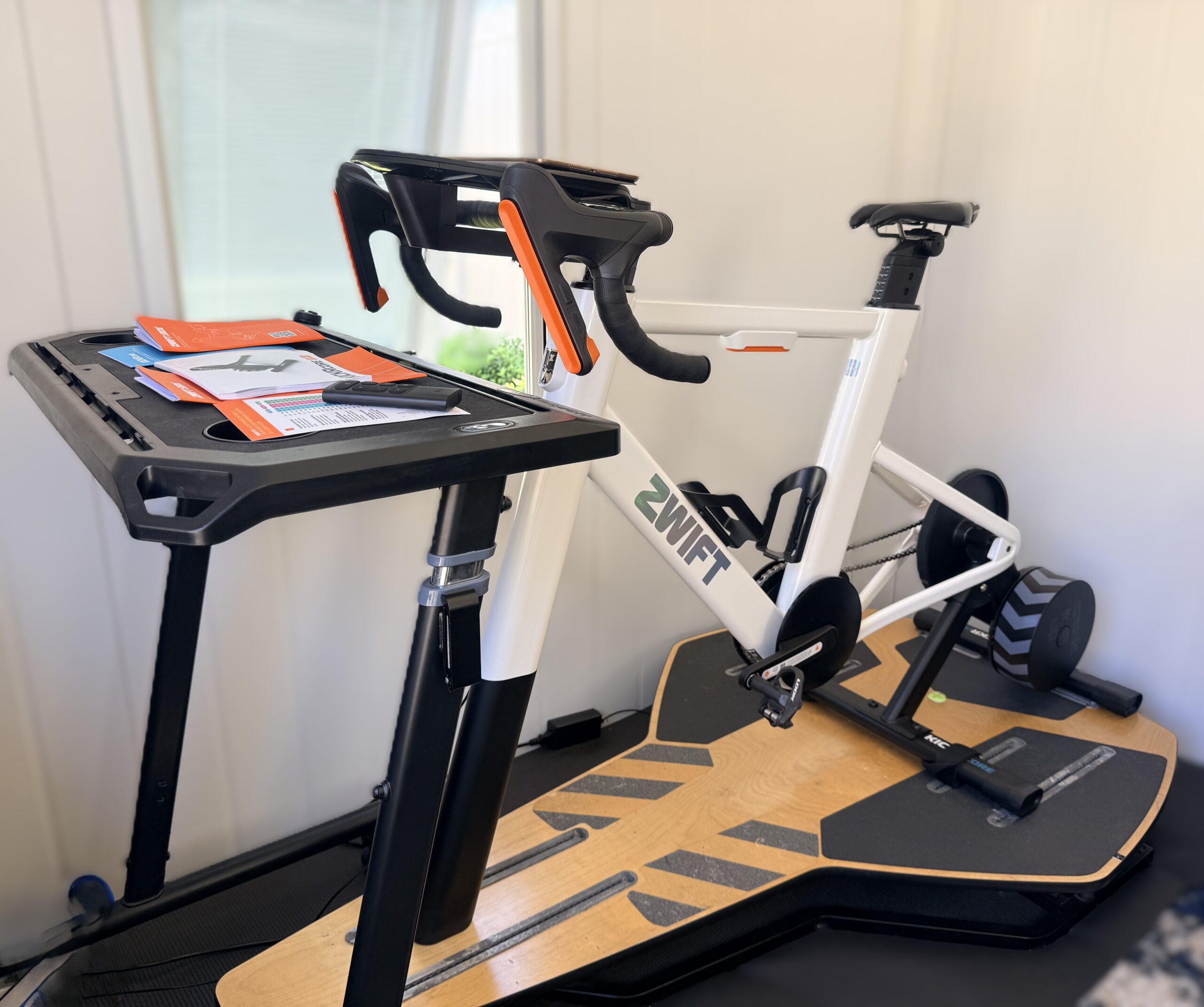 One of the best things about the Zwift Ride is how easy it is to get going, from initial setup to daily use. It comes in a few boxes, the setup is straightforward, and the process from assembling the trainer to pairing everything with Zwift is very intuitive. The quick start guides included were sufficient for anyone new to this product to get setup. Zwift also includes the basics to get rolling right away, including a flat pedals, though the setup shown here uses my own preferred saddle and pedals. Nothing about it felt overly technical. It feels like a product built for someone who wants to get up and riding without turning the process into a project.