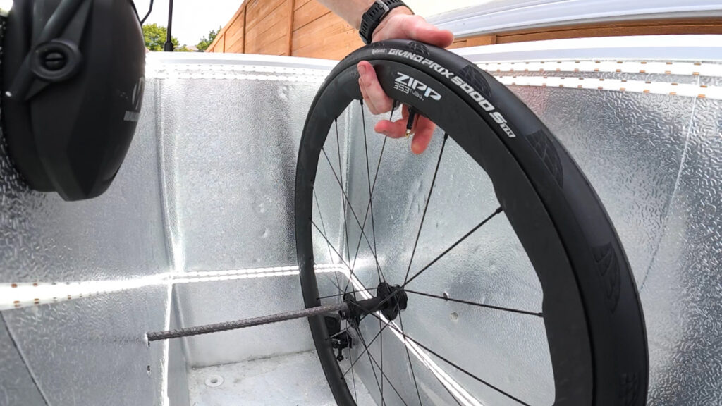 We wanted to test a range of tires. We tested mostly hookless wheels, but we did a hooked wheelset as well. We made sure we had at least one tire from each wheel manufacture. (So we tested CADEX tires on CADEX wheels, Zipp tires on Zipp wheels, etc.) We also tested a couple of the most popular tires on the market. That included Continental’s 5000 and Aero 111. We also tested Challenge Tires because Zipp wouldn’t approve them because they were “too hard to get on the rim.” (I get it – those tires can be a pain in the ass if you don’t know how to install them, but come on, you can install them.)