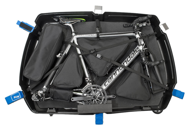 A great example of a new-tech case is the reinforced polypropylene B&W Curv (above), claimed to be the world’s lightest full-sized hard case, at 24 pounds, including all packing materials. It’s up to 50% lighter than traditional ABS plastic cases, and leaves you with 26 pounds of excess weight to fill with your bike, wheels, and whatever else you can fit.