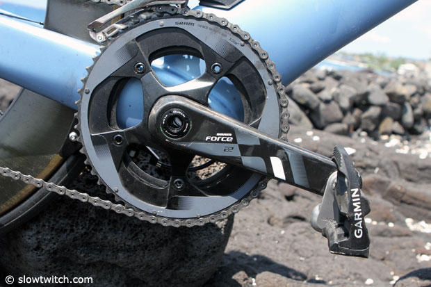 A Garmin Vector power meter makes sure that Hinman does not step too hard on the gas.