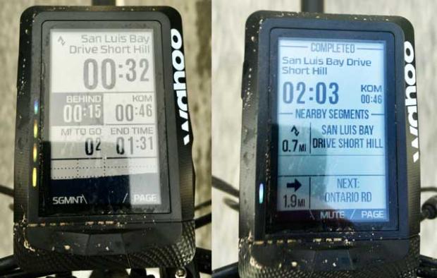 The same process for saving segments within Strava can be done for Strava Premium subscribers. The saved routes, or segments, will automatically sync with the ELEMNT after the 3rd party services have been linked to the ELEMNT. Upon approaching a segment, the ELEMNT provides a countdown timer to the start of the segment and where you are in relation to the KOM.
