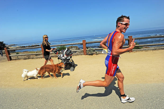 The triathlon that begins with a kelp crawl in the frigid Monterey Bay waters off Lovers Point has earned fierce loyalty from the estimated 1,200 age group and elite competitors who have flocked there every September for 17 years. This year, the Tri-California event commemorated the lives lost in the September 11 terrorist attack a decade ago with prayers, flags, and a memorial wall where the triathlon community wrote heartfelt tributes to the citizens lost, some of whom were dedicated triathletes.