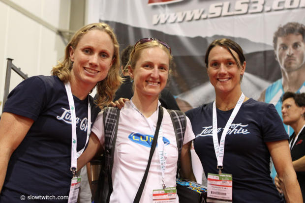 Tara Castro, mountain biker Catherine Pendrel and Tyler Stewart cruising the Interbike show.