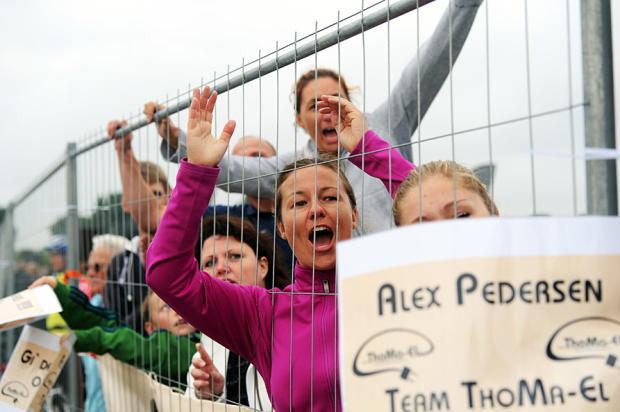 Spectators on the course's big hill inspire with a colorful Danish message.